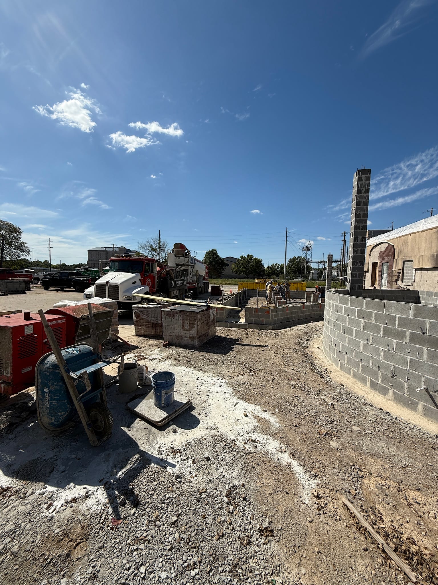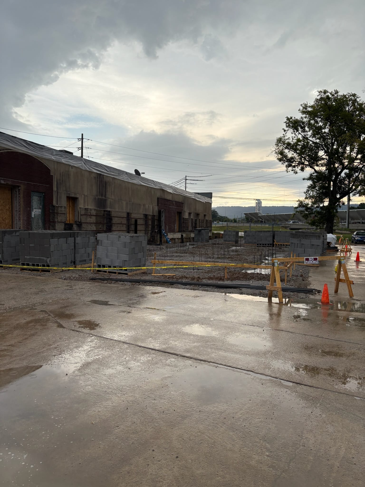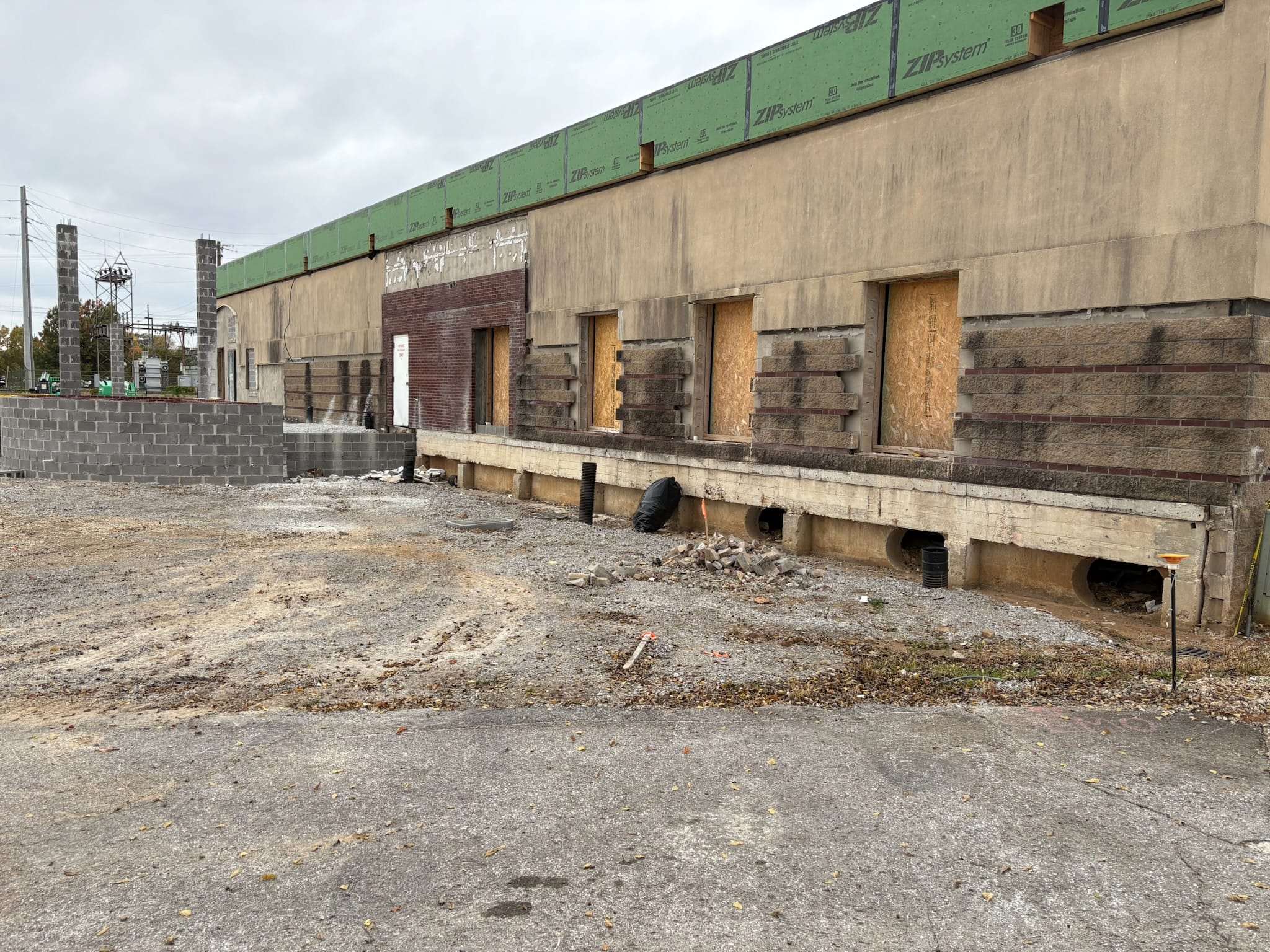 Major work has been done on the parking lot, including concrete removal and excavation.