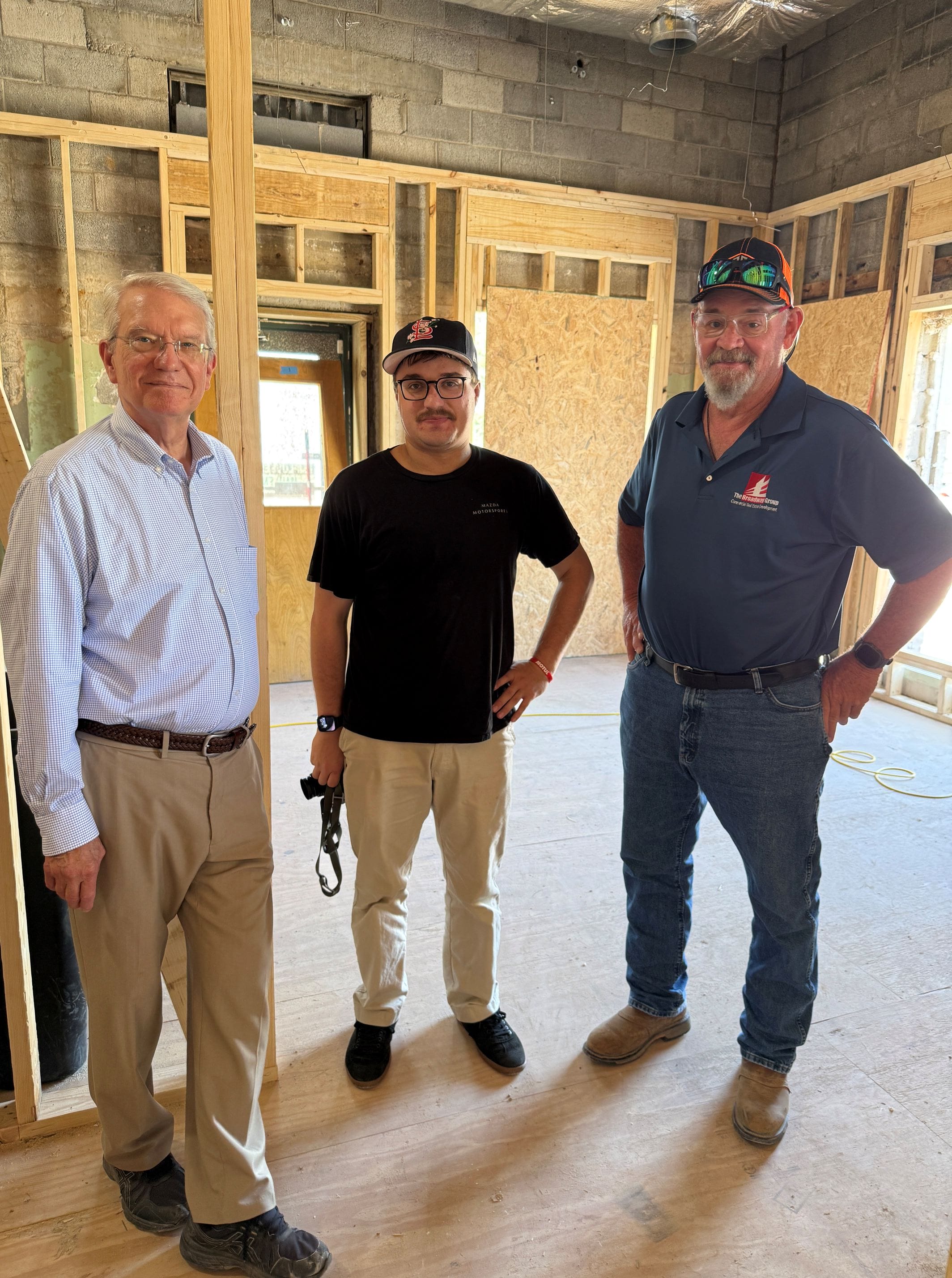 Pictured left to right: Jerry McCullough, P.E., Jim Norton Architect, Jack and Amanda Ragland The Vine, Bob Broadway, Curtis Parcus, David West, The Broadway Group, Kevin Wilson and Pat Lewallen, Officers on the The Vine’s Board of Directors. And, in the picture onsite, Kevin Wilson, Pat Lewallen, and Jim Norton.